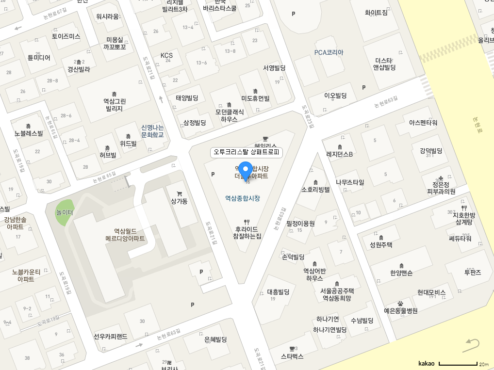 주소 : 서울 강남구 논현로63길 16 역삼종합시장 더블루 116호 전화 : 02-554-2103